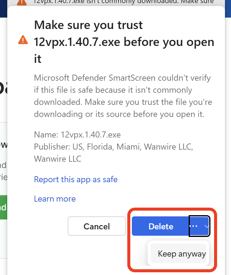 Select the 3-dot menu (⋯), then Keep anyway.