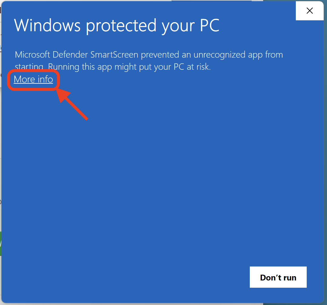 If you use SmartScreen, you may get another pop-up. Select More info.