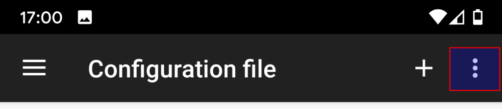 Back on the main screen of the v2rayNG app open the 3-dot menu on the top-right.